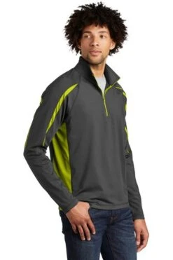 Sport-TeK Sweatshirts: Men’s ST851 BCG Black Charcoal Grey Stretch 1/2-Zip Colorblock Pullover