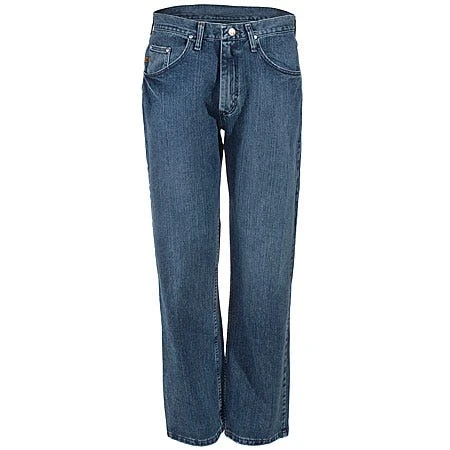 This pair of men’s denim pants is made from 12-ounce 100% cotton. The color is Vintage Midnight, a nice medium blue – not too dark and with a comfortably faded look. They sit a little lower on the waist and have a straight leg. Wondering if that leg will fit over your boots? The leg opening measures 18 1/2 inches so you can check before you buy.