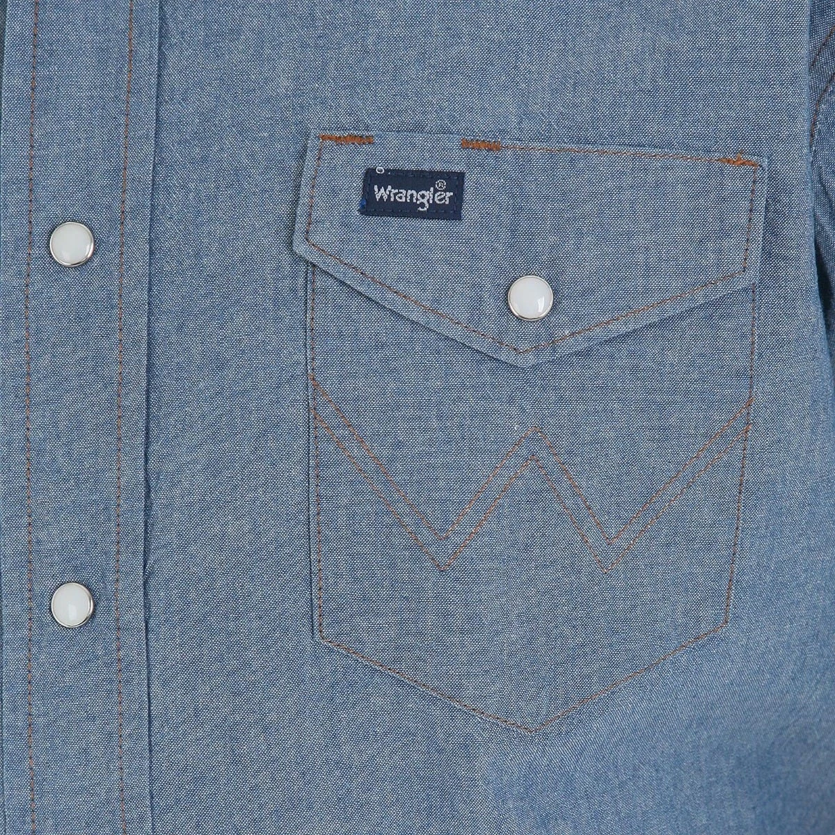 But it’s the little details that really make this Chambray men’s shirt stand out – the Wrangler® “W” decorative logo stitch on the pockets and genuine western three-snap cuffs with a one-snap sleeve placket add an extra touch of western flair that will make you feel like a true cowboy.