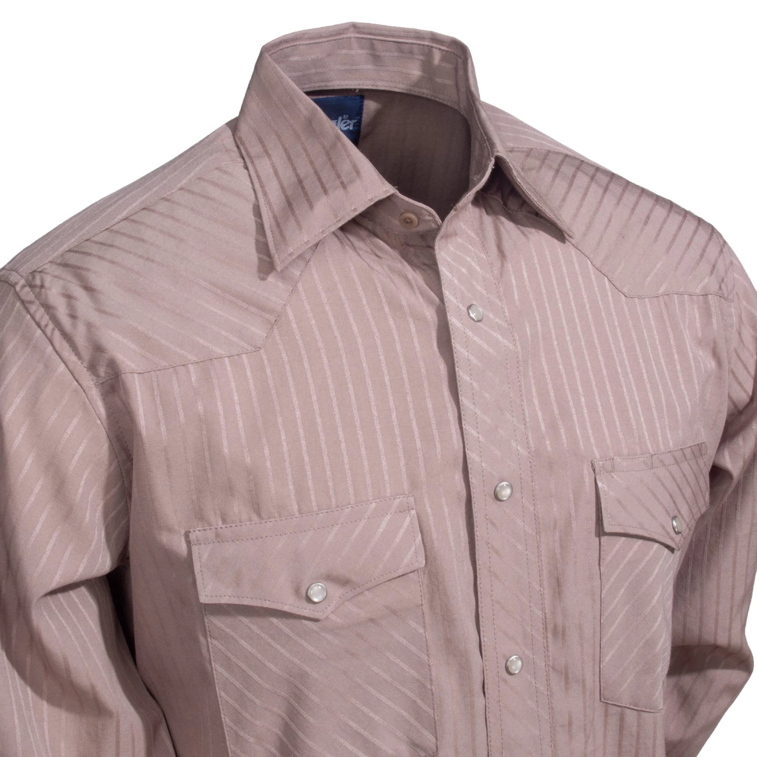 Wrangler Shirts: Men’s Tan 75742 TN Sport Western Dobby Stripe Long Sleeve Shirt